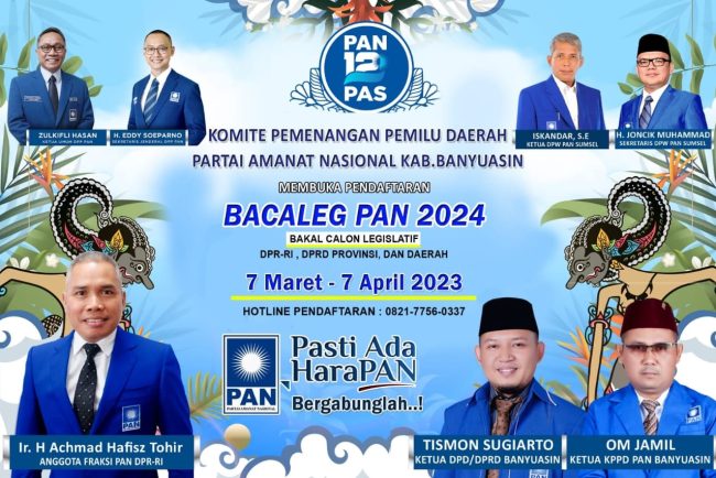 Beritakampus.id – Banyuasin, Dewan Pimpinan Daerah (DPD) Partai Amanat Nasional (PAN) Kabupaten Banyuasin resmi membuka pendaftaran Calon Anggota Legislatif (Caleg) DPR-RI, DPRD Provinsi dan Kabupaten/Kota. Bahkan seluruh putra-putri terbaik Banyuasin bisa mendaftar non kader pun boleh mendaftar, dengan komposisi 50 persen. Hal ini dikatakannya kepada […]