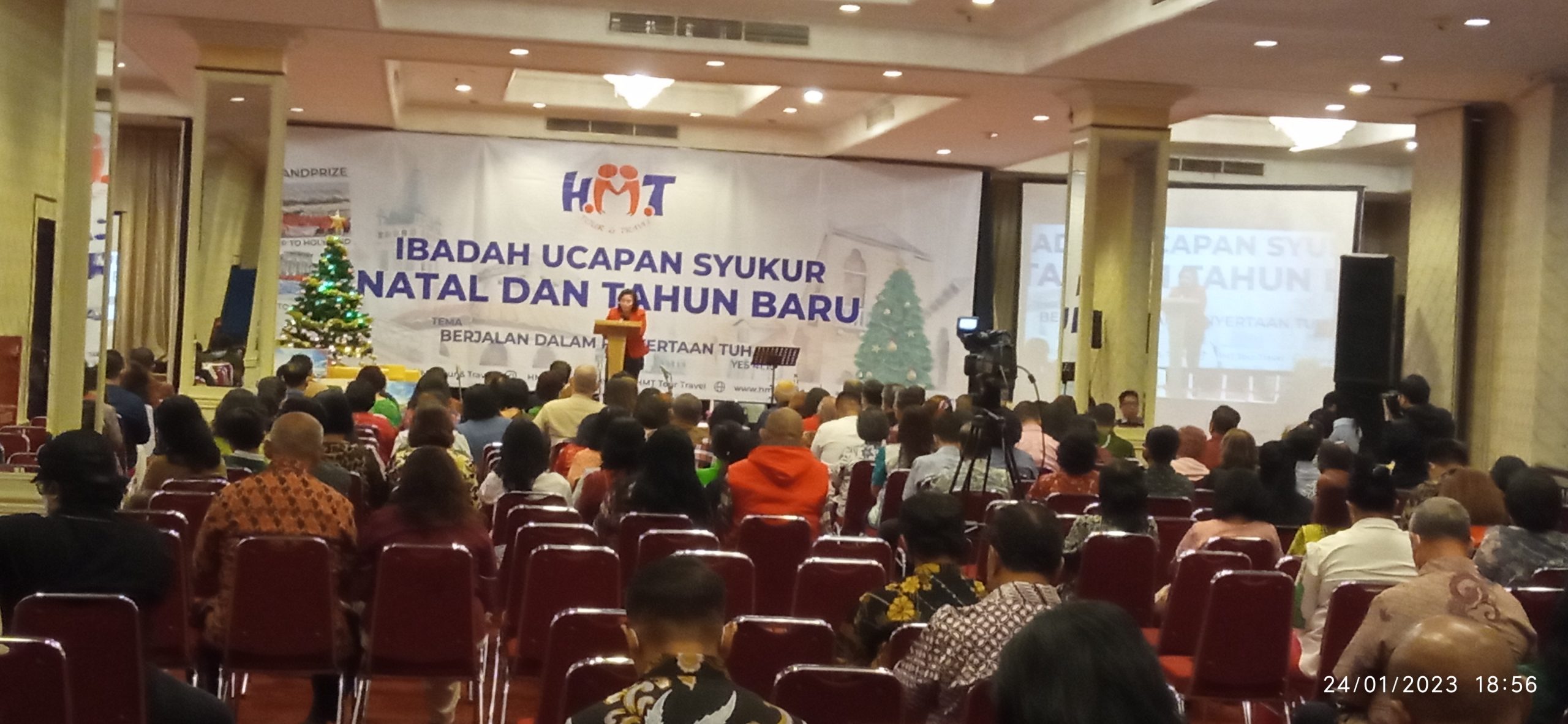 Christmas Gathering HMT Tour and Travel mengangkat tema ” Berjalan Dalam Penyertaan Tuhan” yang dikutip dari Kitab Yesaya 41:10.