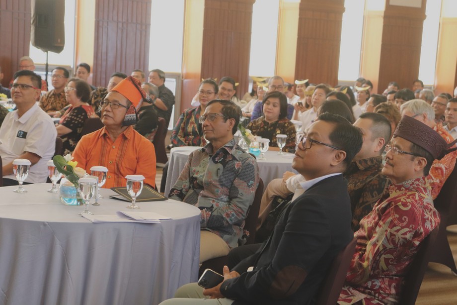 Menko Polhukam Mahfud MD memberikan sambutan dalam acara Syukur Awal Tahun Persekutuan Gereja-Gereja Indonesia (PGI) di Graha Oikumene, Jakarta, Jumat (5/1/2024). Dalam kesempatan tersebut Mahfud menyampaikan pentingnya meningkatkan sikap toleransi dan merawat persatuan antar umat beragama serta menghargai perbedaan pilihan dalam pemilu untuk menjaga keutuhan bangsa dan negara Indonesia.