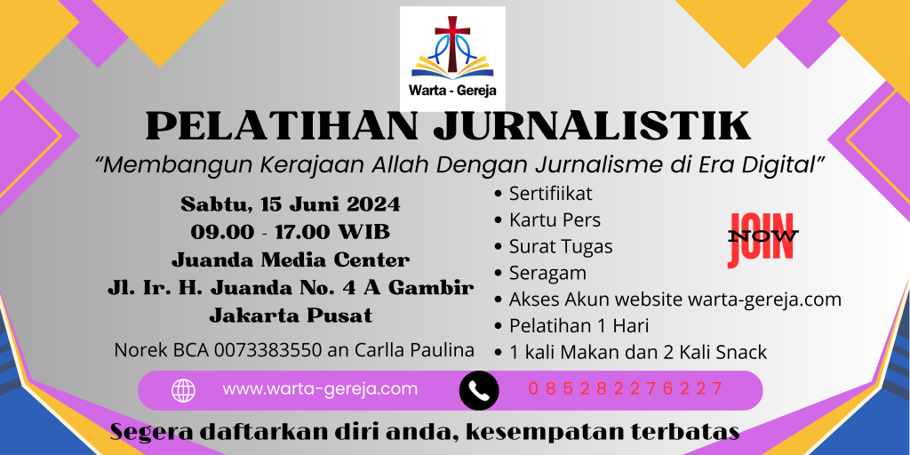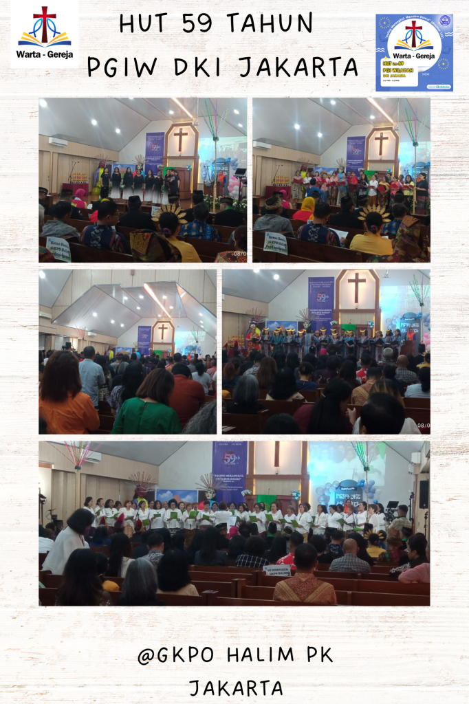 Beritakampus.id – Jakarta Timur, Persekutuan Gereja Gereja di Indonesia Wilayah (PGIW) Provinsi DKI Jakarta merayakan HUT 59 Tahun pada 08 Juni 2024 dengan menyelenggarakan Ibadah dan Perayaan Hari Ulang Tahun di GKPO Halim Perdana Kusuma Jakarta Timur pukul 16.00 – 19.30 WIB.