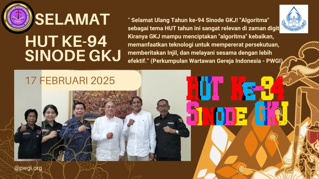 Beritakampus.id – Salatiga – Sinode Gereja-Gereja Kristen Jawa (GKJ) merayakan HUT ke-94 pada tanggal 17 Februari 2025 di kompleks Sinode GKJ. Tema ibadah kali ini mengangkat tantangan di era digital dengan tema “Algoritma.” Diharapkan tema ini dapat membangun relasi persekutuan yang produktif melalui teknologi. GKJ tidak hanya sekadar menjadi pengikut algoritma, tetapi juga berani menciptakan algoritma yang mengarah pada visi dan misi Kristus sebagai Kepala Gereja.